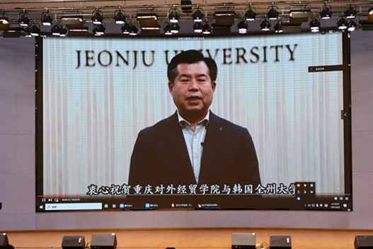 全州大学洪性德副校长、国际交流院褚慧琴院长、人工智能学部高仙佑教授等在线出席,并向国际班发来贺词。洪性德副校长对我校在国际班建设中付出的努力表示感谢,对同学们顺利赴韩学习表示期待,全州大学将竭尽全力做好教学和服务,确保国际班的同学学有所成。