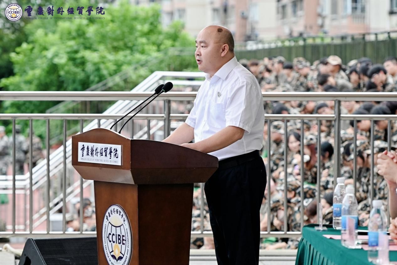 最后,党委书记、督导专员何大海同志发表讲话。他对 2025 级学生军训成果展示活动的圆满举行表示祝贺,对全体军训学员在军训中的出色表现给予高度评价,对军训教官、指导员及相关工作人员的辛勤付出表示衷心感谢。何书记在讲话中对大家提出了三点期望:一是要把“纪律意识”内化于心、外化于行;二是要把“协作精神”融入集体、化为常态;三是要把“拼搏韧劲”刻入骨髓、永不言弃。他希望全体新生能将此转化为未来求学路上的不竭动力,把坚韧品格融入学习实践,既要志存高远,也要脚踏实地,努力成长为堪当民族复兴大任的时代新人,让青春在奋斗中绽放绚丽光彩。
