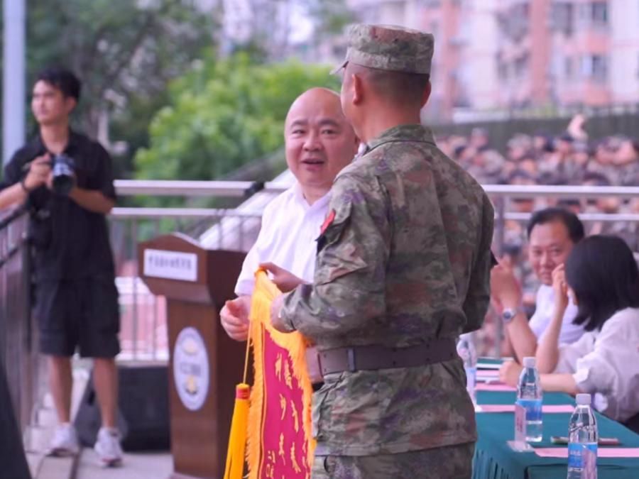 颁奖仪式后,学校向承担此次军训任务的相关单位赠送锦旗,以此感谢他们在军训期间的辛勤付出与专业指导,锦旗上的文字饱含着学校对军训工作者的诚挚敬意。