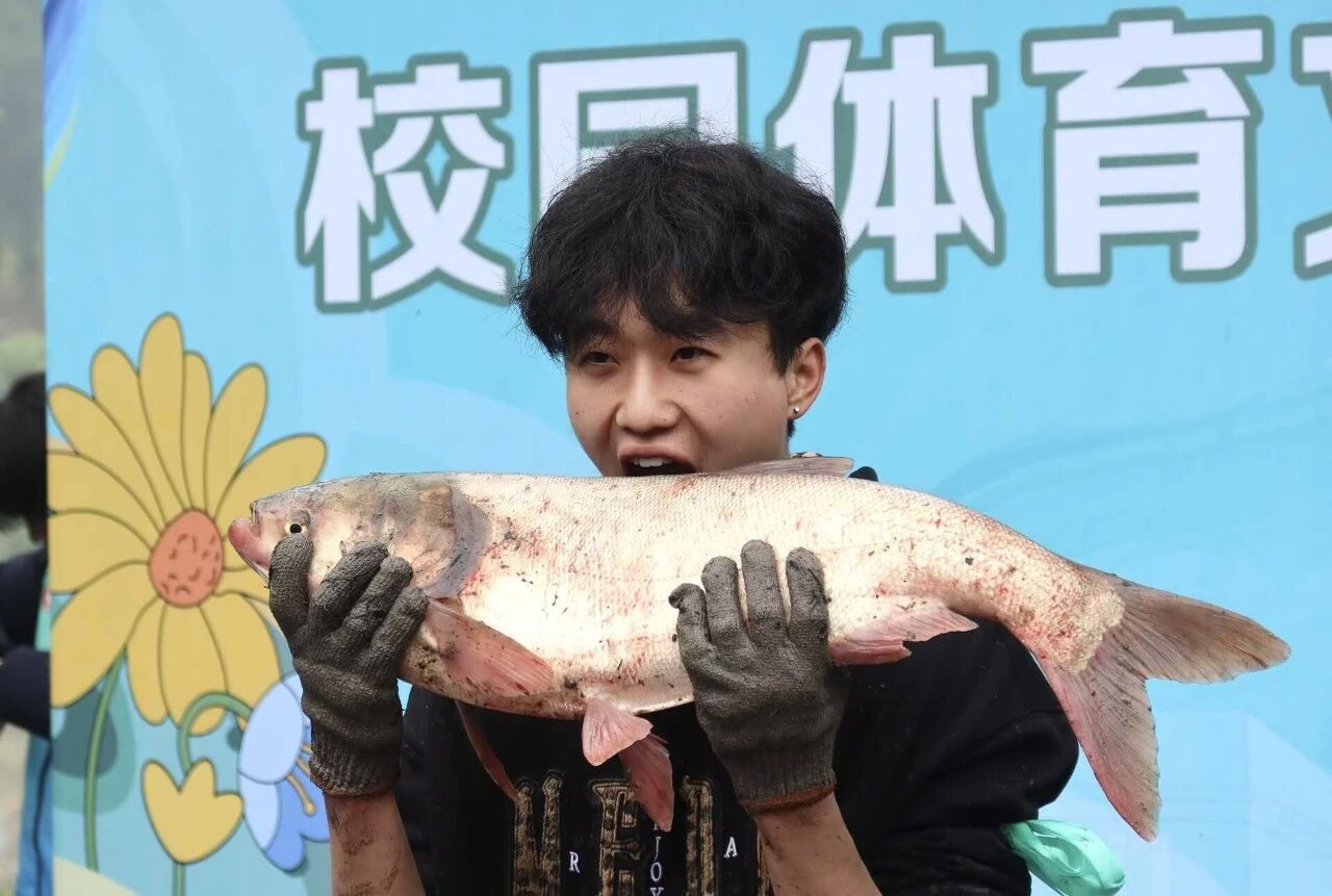 活动尾声,工作人员依据抓鱼数量与重量统计排名并现场公布结果,并将各学院、机关自主捕获的鲜鱼作为专属奖品颁发。每人手持一条鱼,一同合影留念,将这美好瞬间永久定格。