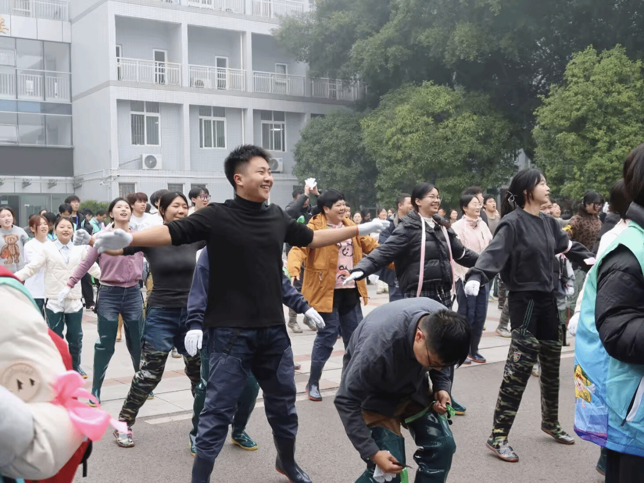 一声令下,同学们迅速投身“战斗”。荷花池边热闹异常,团队协作围堵,有的单兵作战展开追击,灵活地穿梭于池边浅水区。时而屏息凝神瞄准目标,时而欢呼雀跃收获战果,现场的掌声、笑声、欢呼声此起彼伏,充分彰显了青年学子的蓬勃朝气。