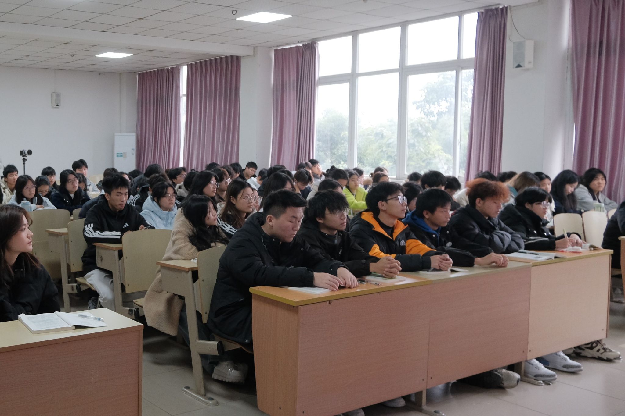 课堂上,百名学子聚精会神听讲、认真记录要点,积极参与互动思考。课后,大家纷纷表示,何书记的授课既厘清了四中全会精神的核心要义,又明确了青年学生的使命担当,深刻体会到个人理想与城市发展、国家命运的紧密联系,将把学习成果转化为学习动力和行动自觉。