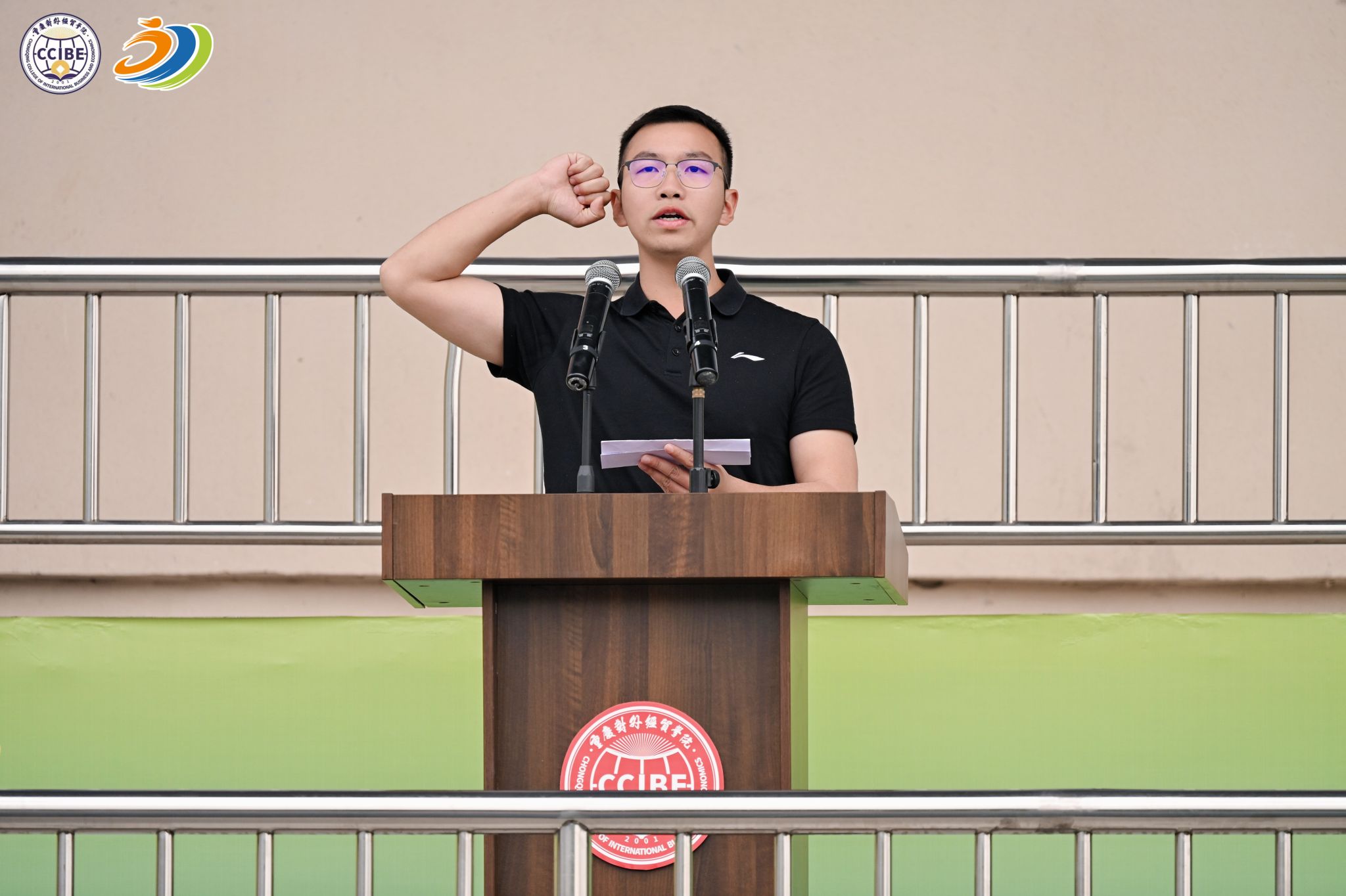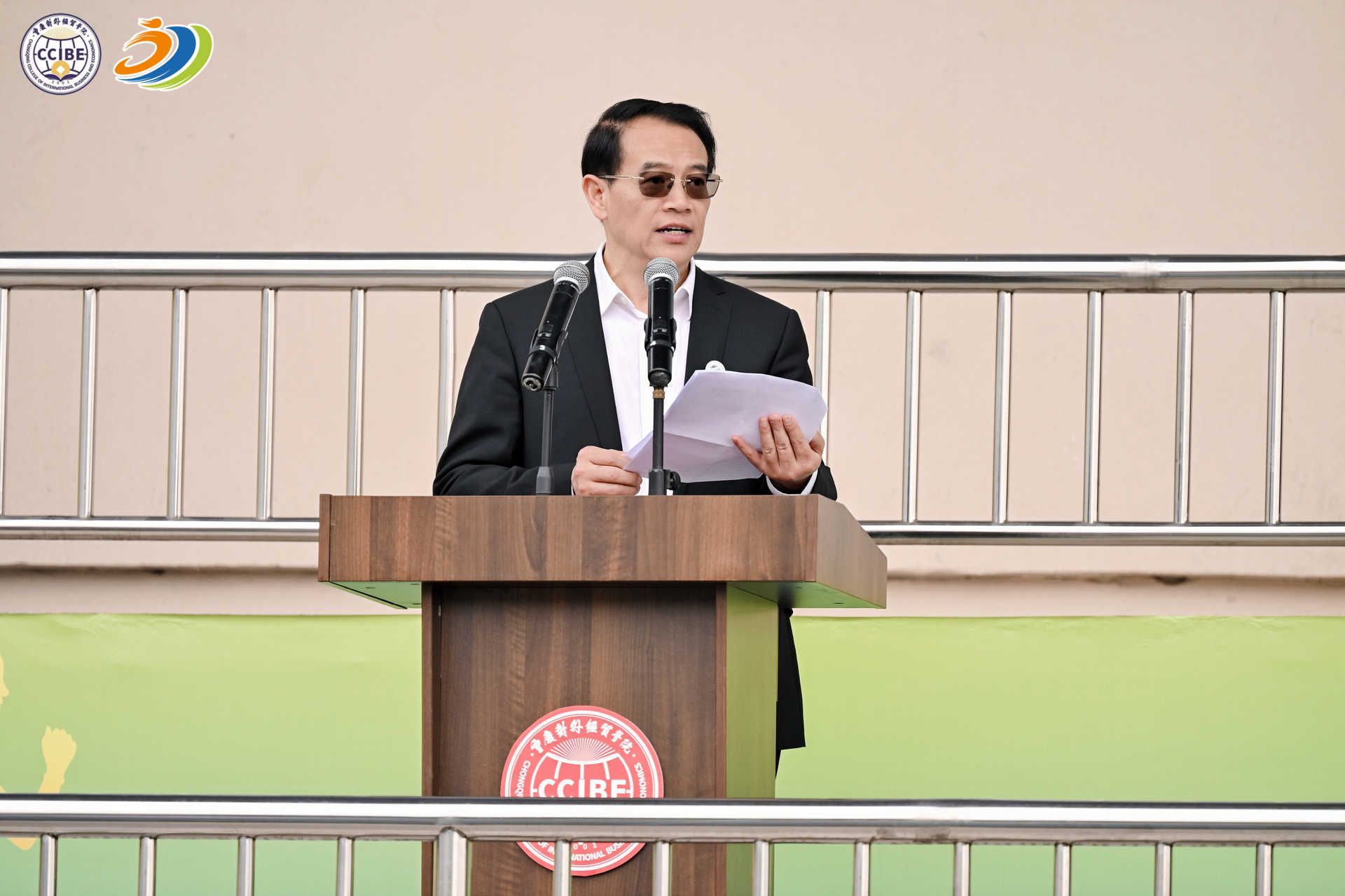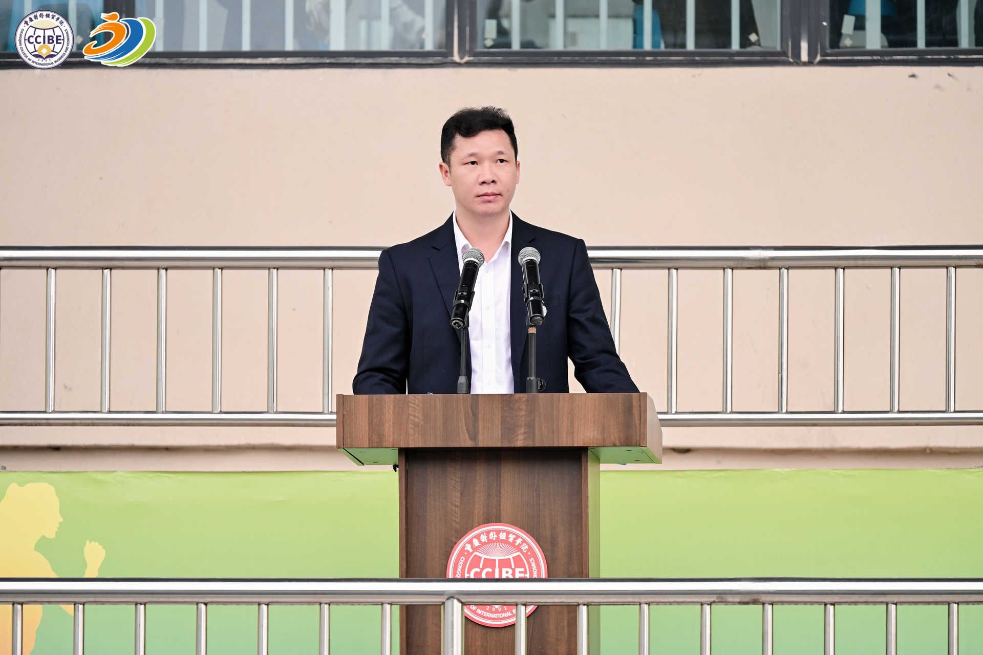 在雄壮激昂的国歌之后,执行校长董志致辞。他代表学校向全体运动员、裁判员及工作人员致以诚挚的问候,总结了在过去一年学校体育事业取得的优异成绩。执行校长董志指出,体育是青春的载体,是奋斗的号角,更是学校育人精神的生动诠释。他希望全体运动员、全体裁判员、全体工作人员发扬体育竞技精神、遵守体育竞赛规则,共同营造文明、热烈、安全的赛事氛围。