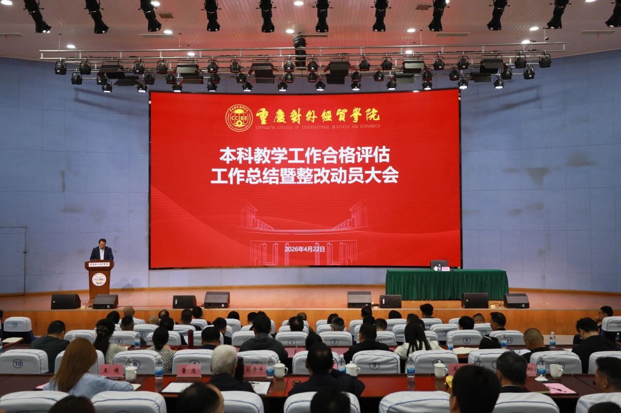 2026年4月22日,学校在A9101学术报告厅召开本科教学工作合格评估工作总结暨整改动员大会。郭元新理事长、校领导班子成员、驻校理事及全校科级以上干部参会。执行校长董志主持会议。