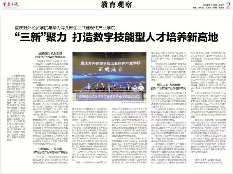 【重庆日报】报道“三新”聚力打造数字技能型人才培养新高地