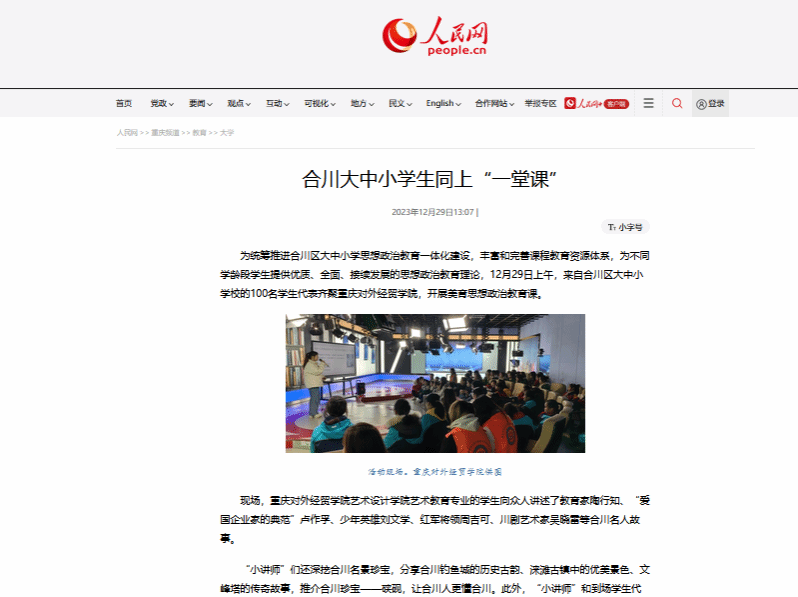 【人民网】报道合川大中小学生同上“一堂课”