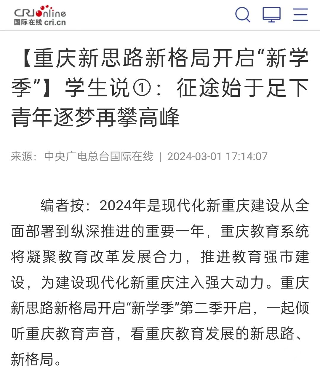 【中央广电总台国际在线】报道学生说①:征途始于足下 青年逐梦再攀高峰