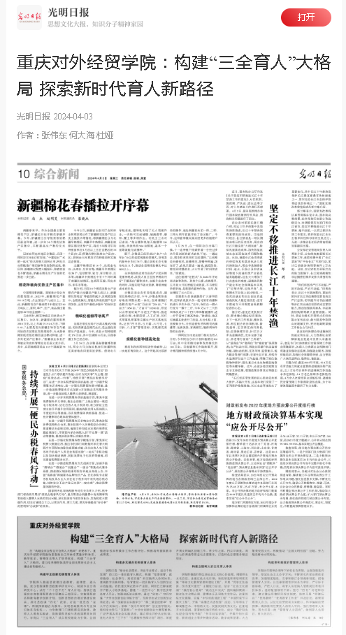 【光明日报】报道重庆对外经贸学院:构建“三全育人”大格局 探索新时代育人新路径