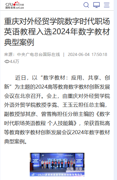 重庆对外经贸学院数字时代职场英语教程入选2024年数字教材典型案例