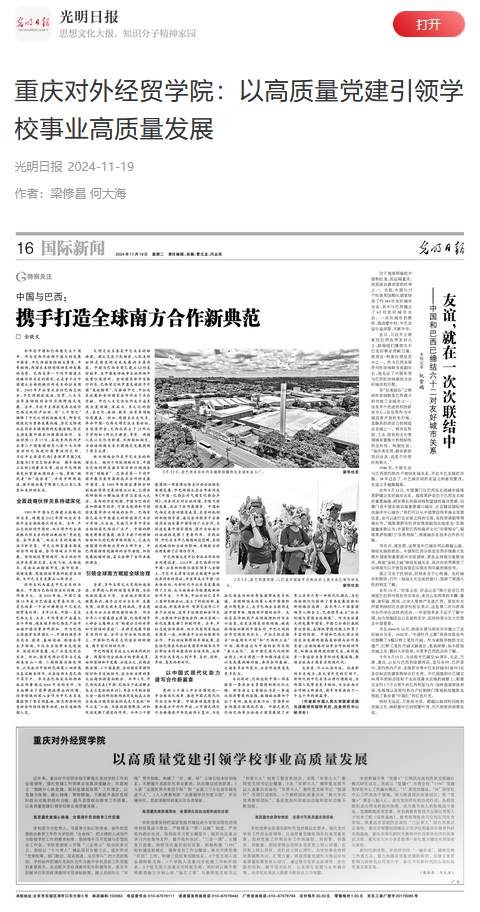 《光明日报》报道重庆对外经贸学院:以高质量党建引领学校事业高质量发展