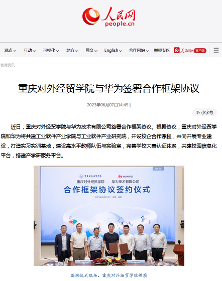 人民网:《重庆对外经贸学院与华为签署合作框架协议》