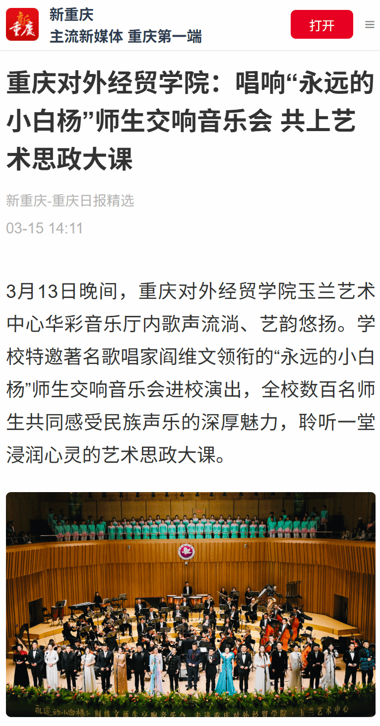 重庆对外经贸学院:唱响”永远的小白杨"师生交响音乐会 共上艺术思政大课