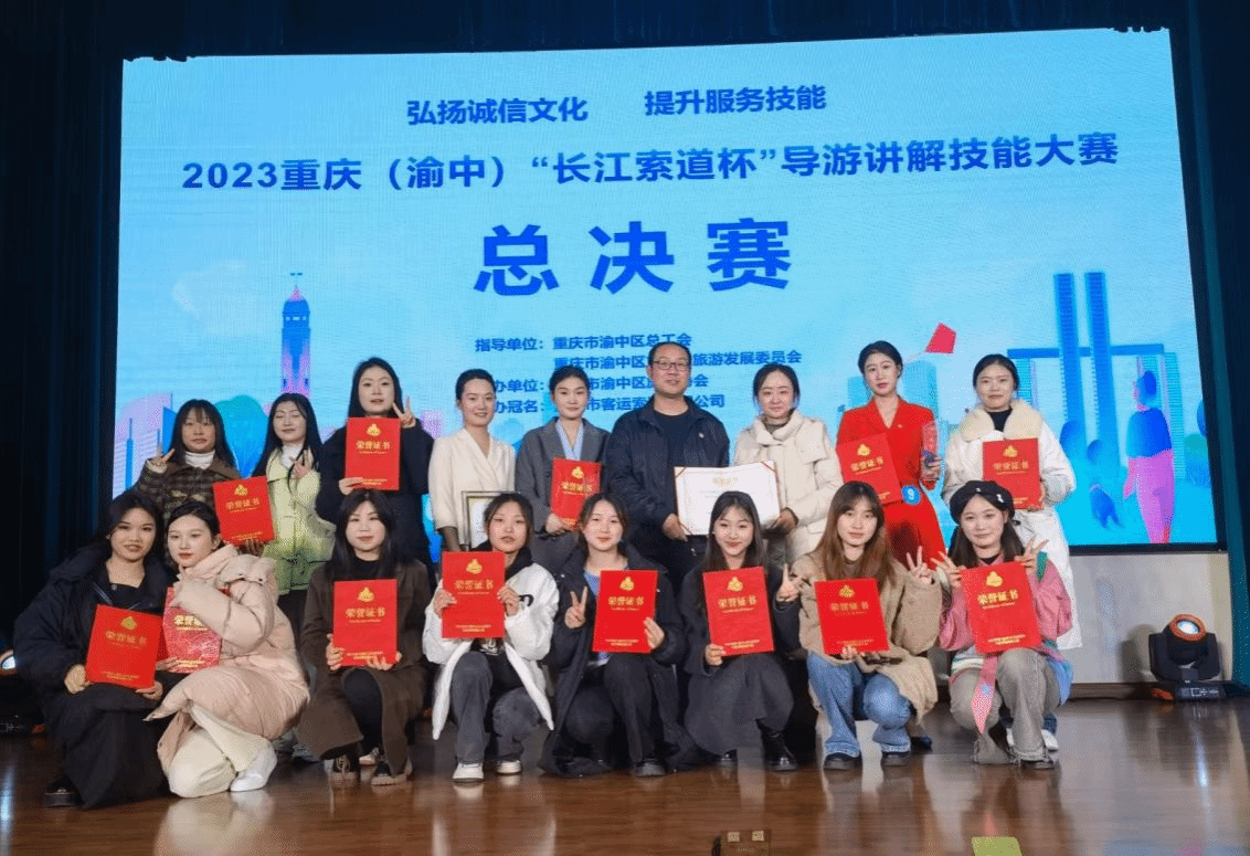 近期,管理学院旅游管理专业教师带领27名旅游管理专业学生,参加了由重庆市渝中区旅游协会主办并承办,重庆市渝中区总工会、重庆市渝中区文化和旅游发展委员会指导,重庆市客运索道有限公司协办并冠名的2023“长江索道杯”重庆导游讲解技能大赛,在本次比赛中锐意进取,再创佳绩!