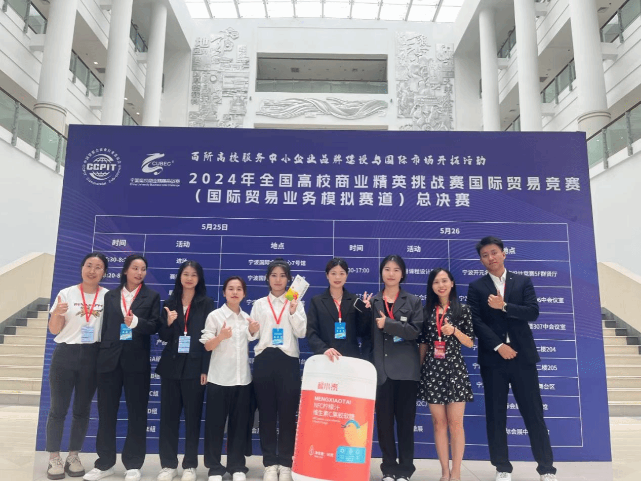 此次竞赛由中国贸促会商业行业委员会、中国国际商会商业行业商会和中国商业经济学会联合主办,是中国学科竞赛排行榜目录中唯一的国际贸易专业赛事活动。在备赛过程中,学院领导、全体教师以及檬泰生物科技公司给予了鼎力支持。7名参赛同学从紧张的学习阶段中抽出大量时间,付出巨大精力,认真完成了整个竞赛过程。