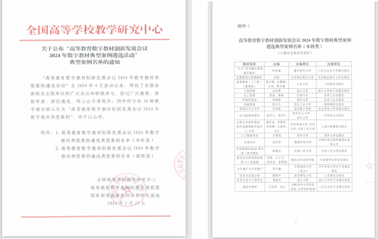 在学校教务处统筹下,外语外贸学院李霓教授和王玉云教授担任总主编,邹其彦副教授和曾雪梅副教授担任分册主编的《数字时代职场英语教程 个人技能篇》荣获首批“高等教育数字教材创新发展会议2024年数字教材典型案例”。