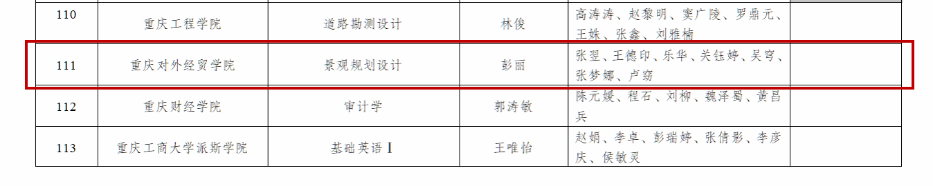 示范课程、教学名师和团队名单(重庆对外经贸学院)