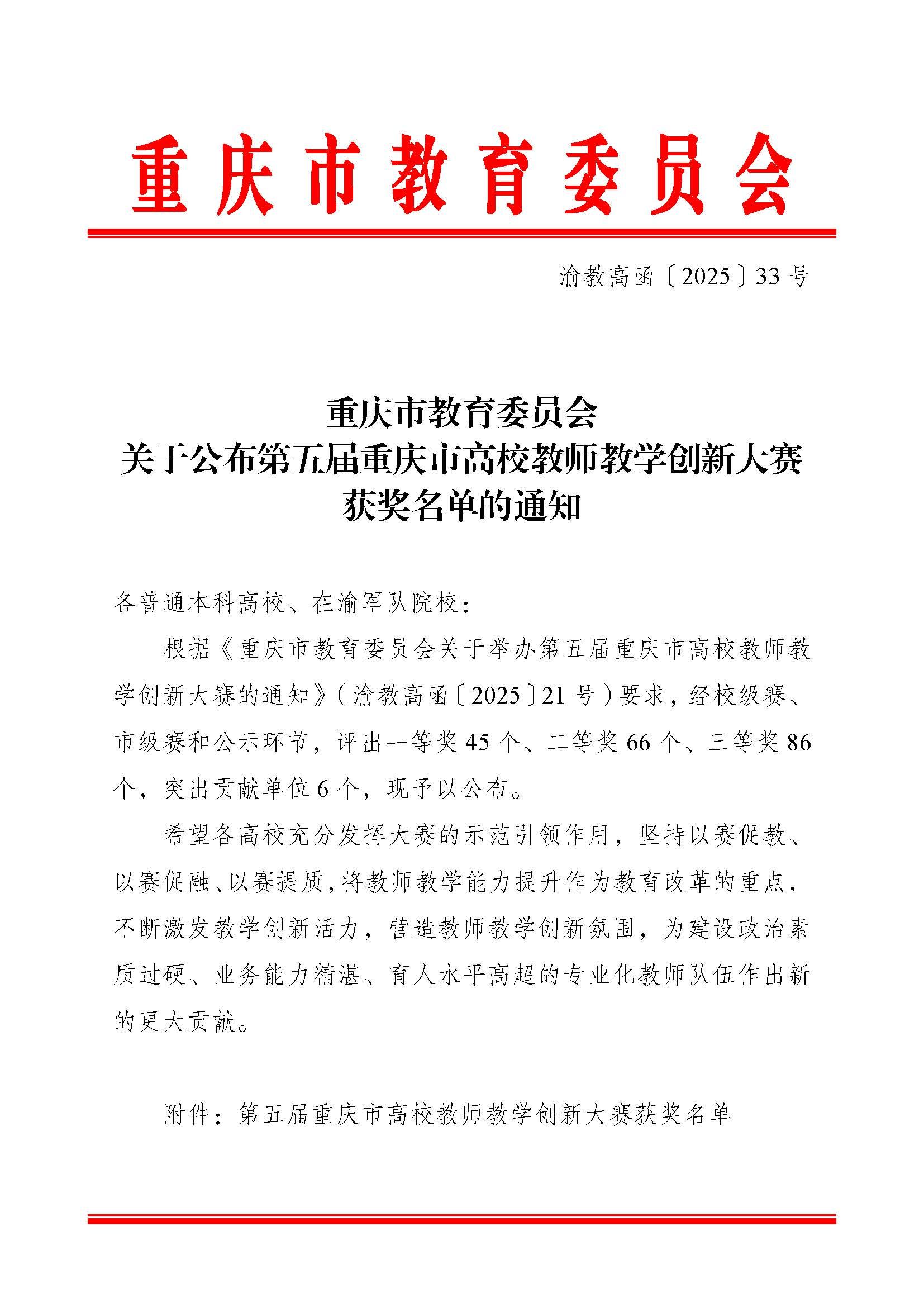 近日,重庆市教育委员会公布了第五届重庆市高校教师教学创新大赛获奖名单,我校教师在众多优秀选手中脱颖而出,斩获殊荣: