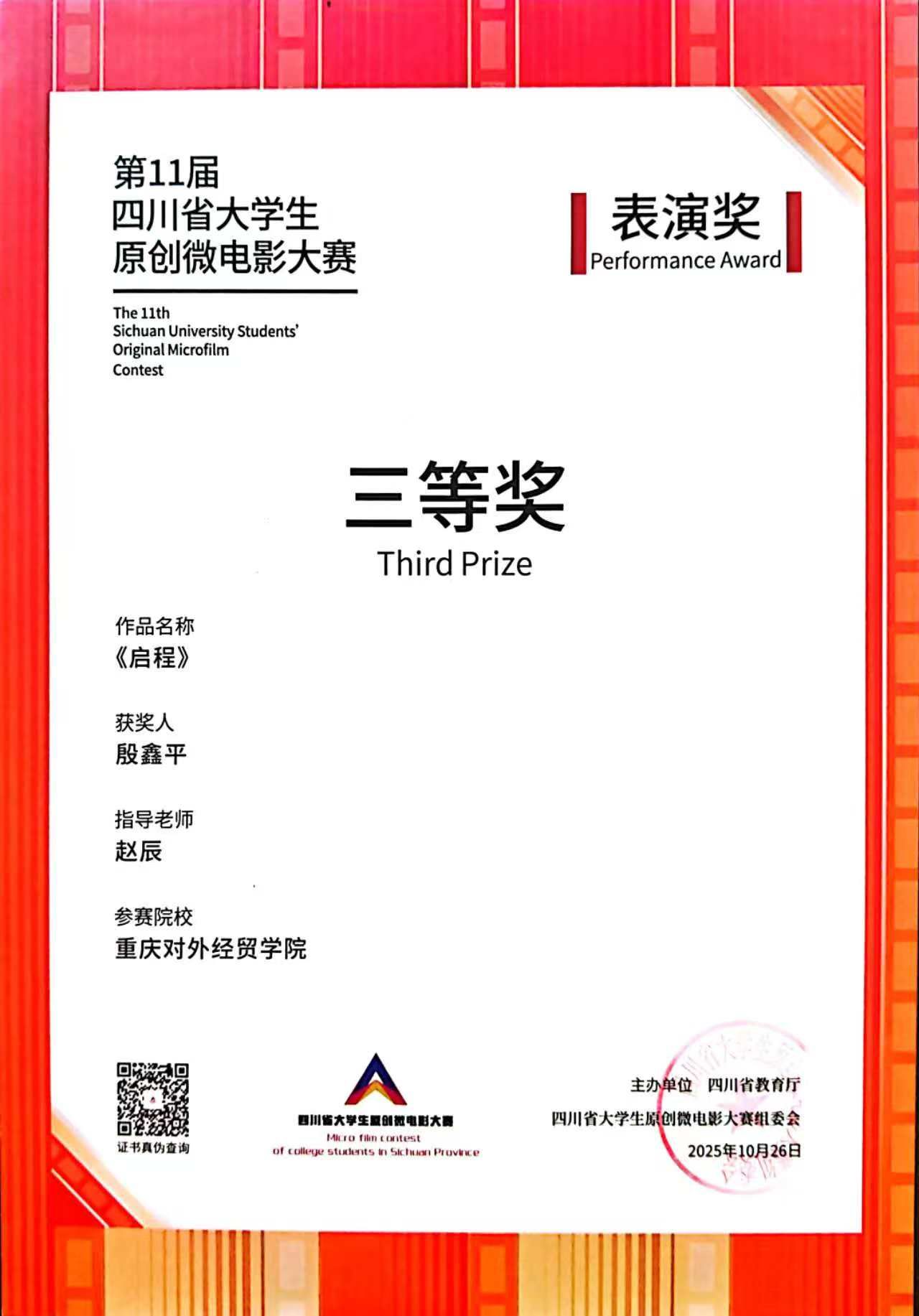 《启程》主演殷鑫平获三等奖(指导教师:赵辰)
