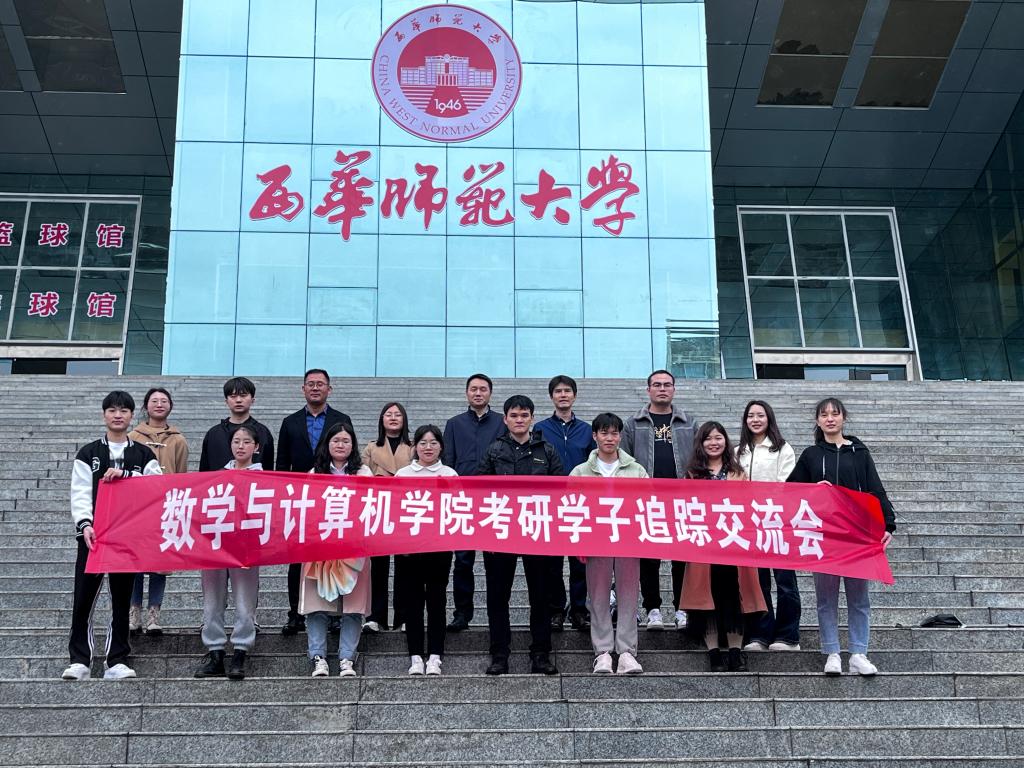 2023年4月23日,数学与计算机学院院长陈东升、党总支书记尹翔、副院长马秀芬一行来到西华师范大学。首先与由数学与计算机学院考入西华师范大学的11位研究生座谈交流,老师们了解其学习、生活和职业规划情况,学生们结合研究生阶段的学习经历向学弟学妹们提出了一些方法和建议,师生相谈甚欢、其乐融融。 然后与西华师范大学数学与信息学院领导班子进行了座谈会。双方就学院发展、师资队伍、人才培养、专业建设等进行了交流,为双方学院创新发展提供了思路和借鉴。 此次访企拓岗行动增加了师生了解,增强了兄弟院校情谊,将助推我校高质量发展。