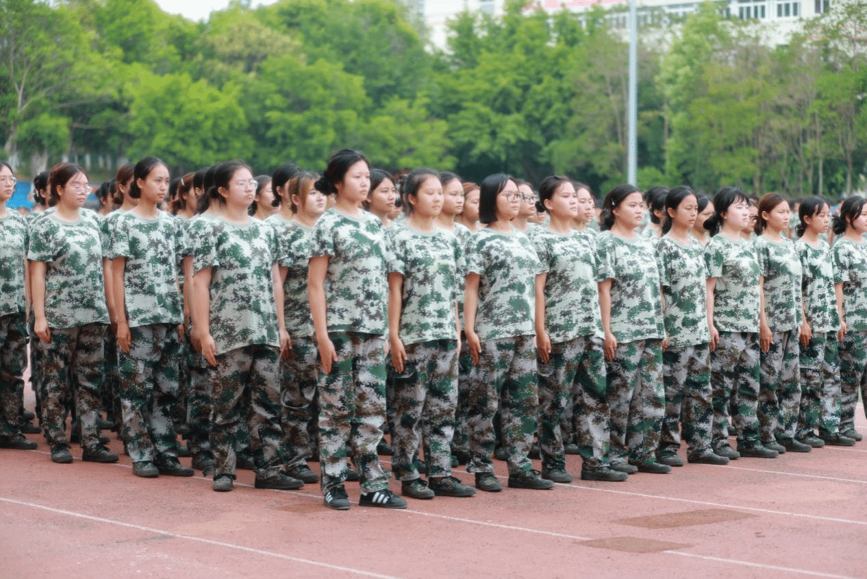 升国旗,奏国歌。在雄壮的军歌声中,同学们步伐整齐划一,口号坚定响亮,随着教官一声令下,军训大比武正式开始,各连队同学身着迷彩,迈着刚劲有力的步伐前行。