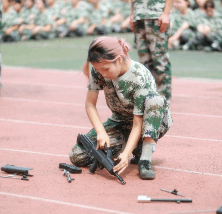 “预备,开始!”指挥员一声令下,步枪分解同学迅速进入状态,拆卸、组装,动作干净利索,清脆的金属撞击声此起彼伏。
