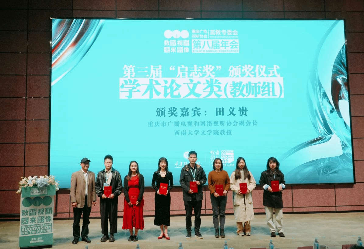 上午的开幕式现场揭晓了第三届“启志奖”各类别最终获奖名单,并举行颁奖仪式。在学术论文类教师组“启志耕耘奖”评选中,学院教师陈沐、赵辰获二等奖,陈依彤、陈浪、潘露、付麟雅获三等奖,周洋、龙雯、谢霞、陈思弈、冷天泽、杨雪梅获优秀奖;在微短剧剧本、短视频评选中,来自广编、网新专业的学生团队共获9项荣誉,我院教师冉冉、陈沐获优秀指导教师奖;学院获优秀组织奖。