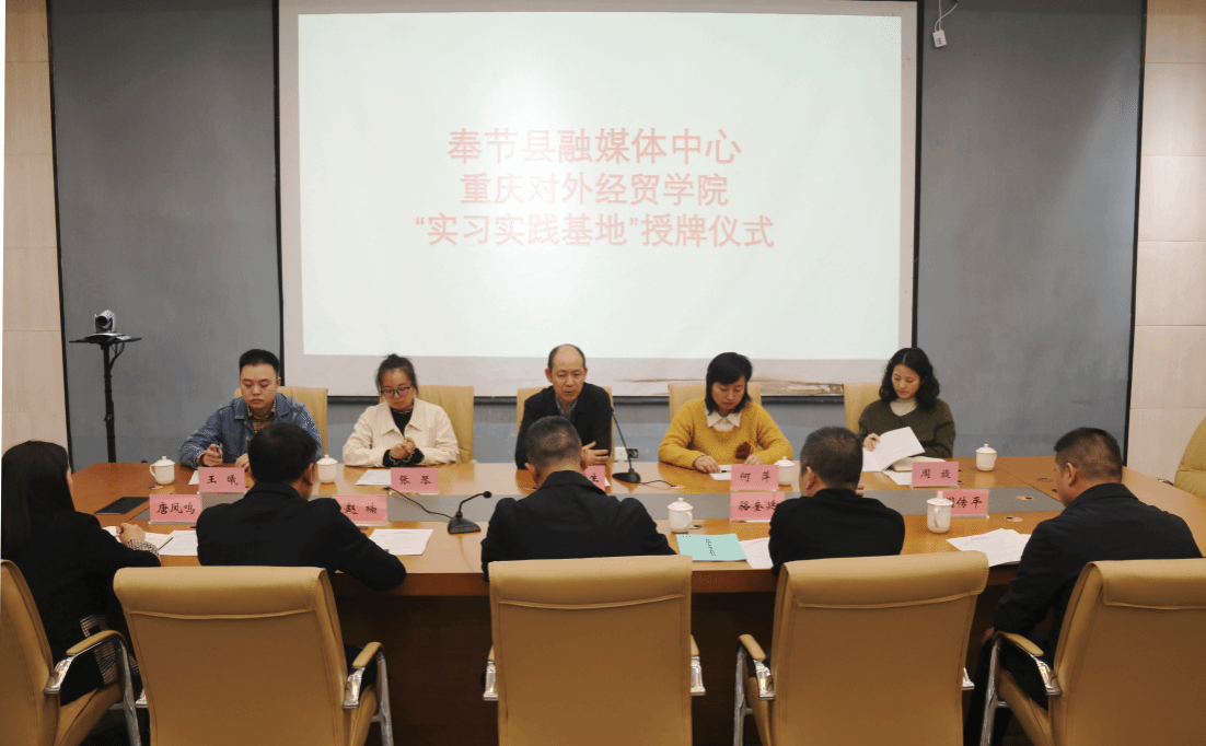 【本网讯】11月15日,我校文学与创意传播学院常务副院长段庸生教授,新闻学系主任何萍副教授,专业教师张琴、王曦、周旋一行前往奉节县融媒体中心参加“实习实践基地”授牌仪式。奉节县融媒体中心党支部书记吴勇,融媒体中心副主任赵楠、骆奎廷、唐凤鸣,融媒体中心党支部专职副书记周传平及所有中层干部出席会议。