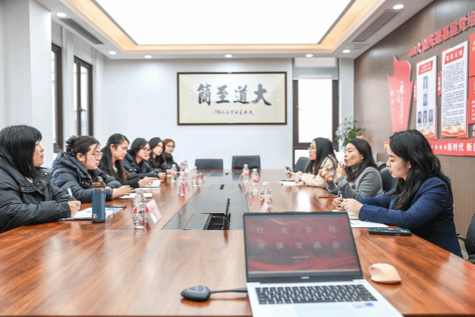 双方围绕人才培养、资源共享、实践基地建设等议题展开深入探讨,周院长介绍学院办学特色、财务管理专业建设成果及“应用型人才”培养目标。企业方佘总阐述企业发展战略,强调财务管理在智能转型中的核心作用,并分享企业在校企合作项目中的应用案例。