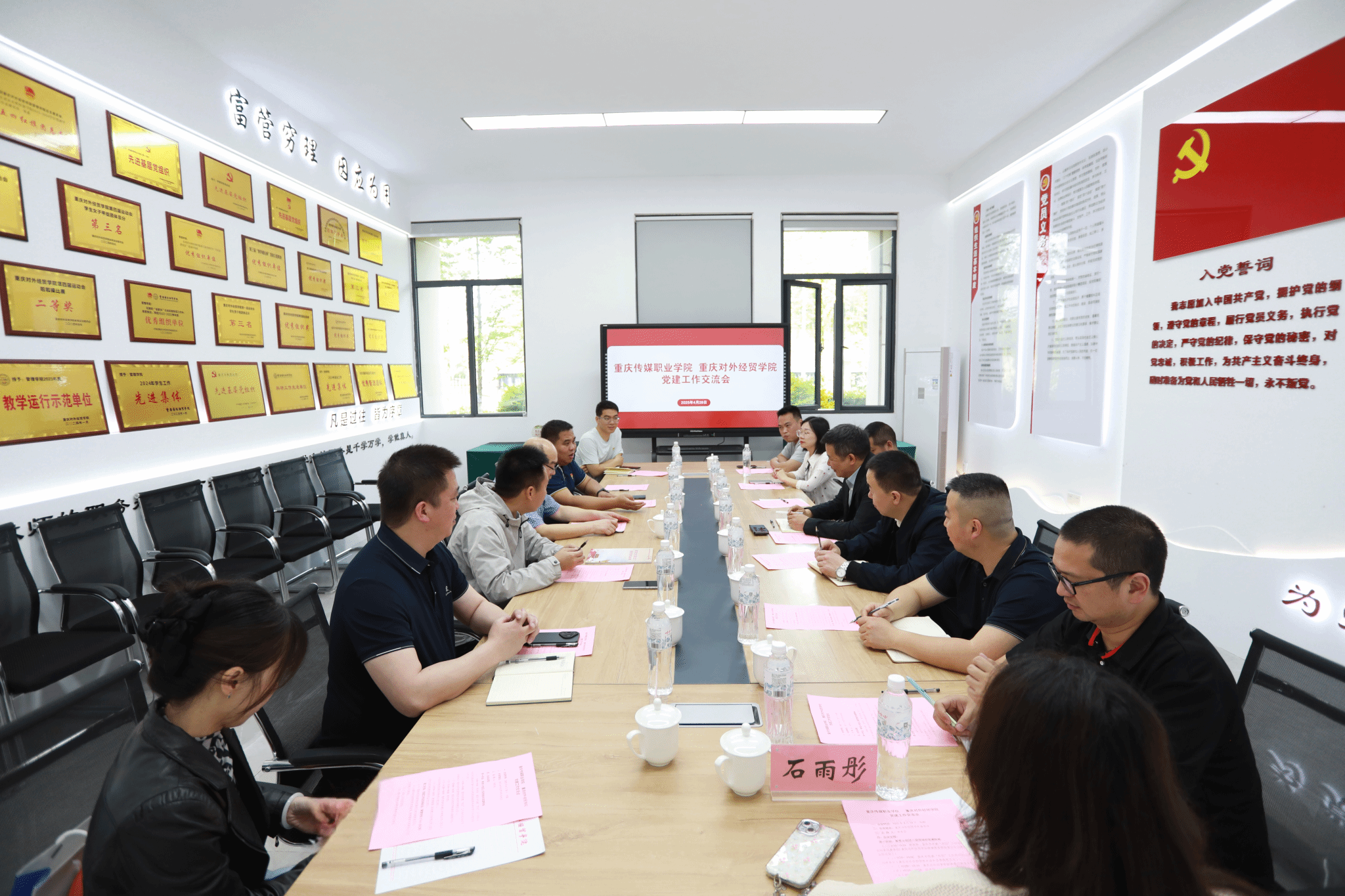 何大海书记首先对重庆传媒职业学院高天红书记一行的来访表示热烈欢迎,并对学校基本情况做了简要介绍。梁修昌部长从学校党务工作机构设置、专兼职党务工作人员配备及基层党组织特色项目建设等方面介绍了学校党建工作的建设成效。