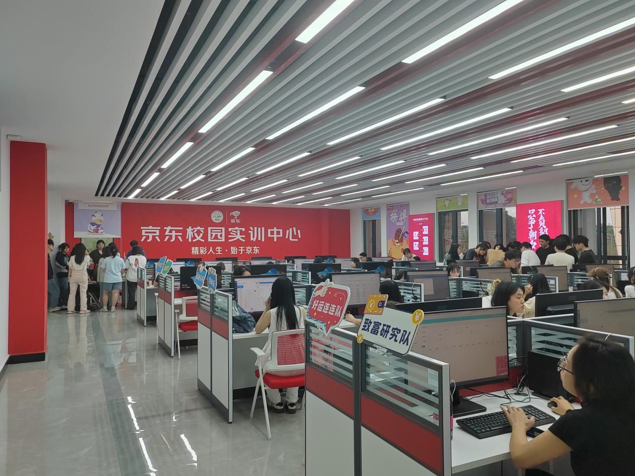 京东数字经贸产业学院,共建共享共赢:学院与京东集团联合成立“京东数字经贸产业学院”,以“共建、共管、共享、共赢”为建设理念,采用“产业+专业”双轮驱动的联动机制,形成产教融合创新人才培养范式。产业学院面向跨境电商、互联网零售等产业链需求,打造“四链”对接模式,融入课程思政、岗课赛证和双创教育,实现从认岗、知岗到思岗、顶岗的人才成长路径。