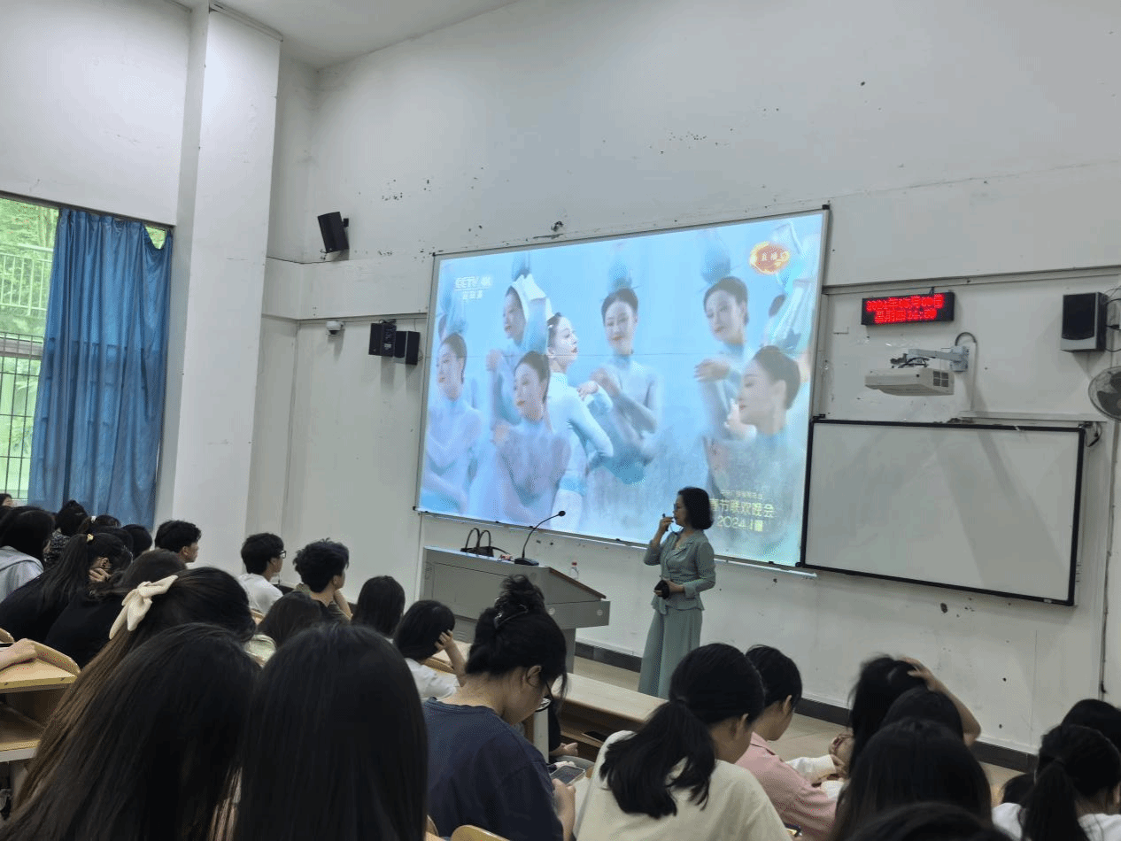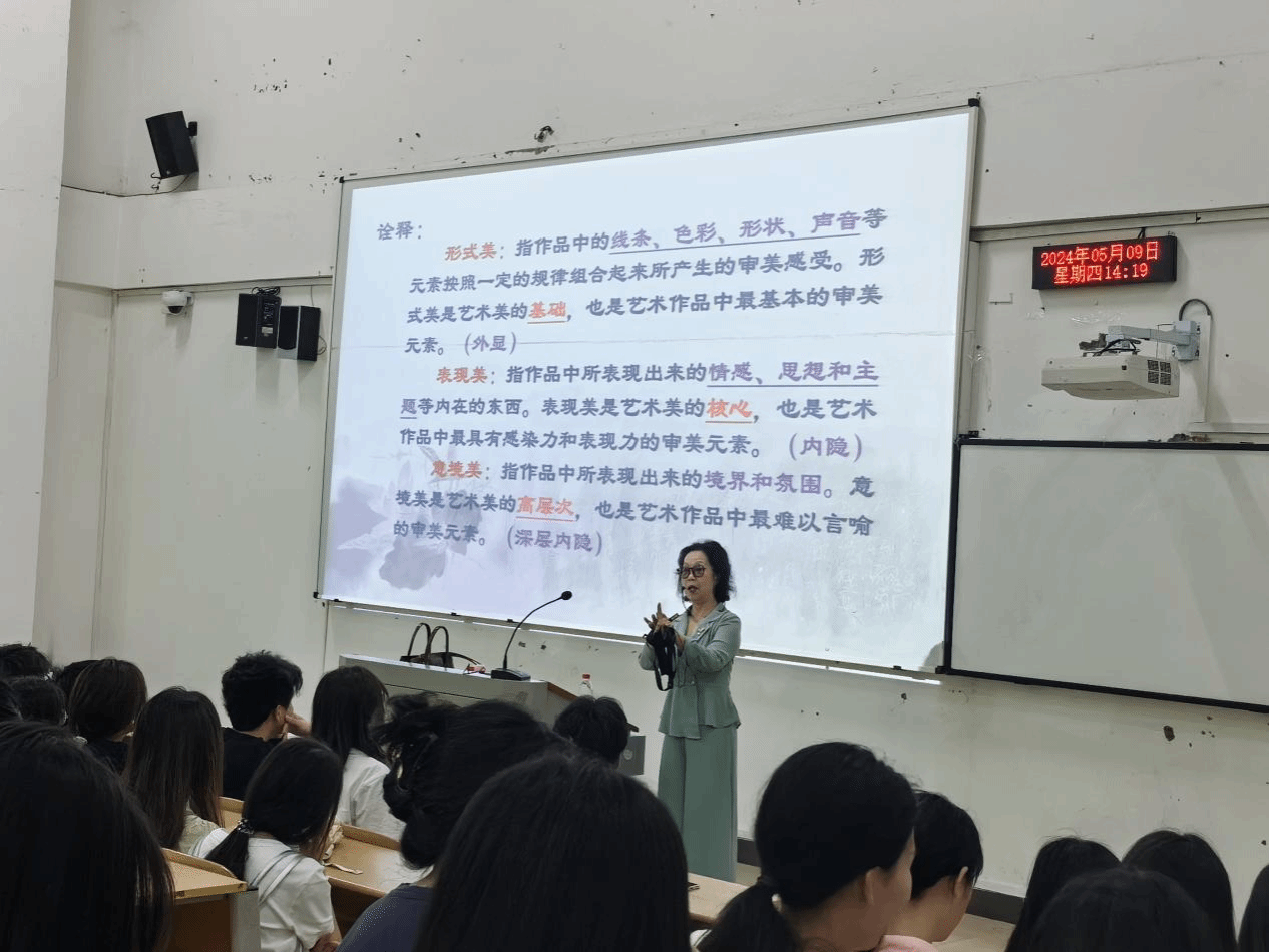 讲座从三个板块介绍中华优秀传统文化中的艺术美本质,阐释了传统文化的定义与内涵,传统文化的元素和传统文化的现代意义等。结合古诗词,将古典文化中的形式美、表现美、意境美展现出来,从古典音乐、舞蹈、戏曲、传统绘画、传统建筑等方面进行展开讲解,同时以视频、音乐、图片等方式给同学们带来一场精彩的美学视觉盛宴。