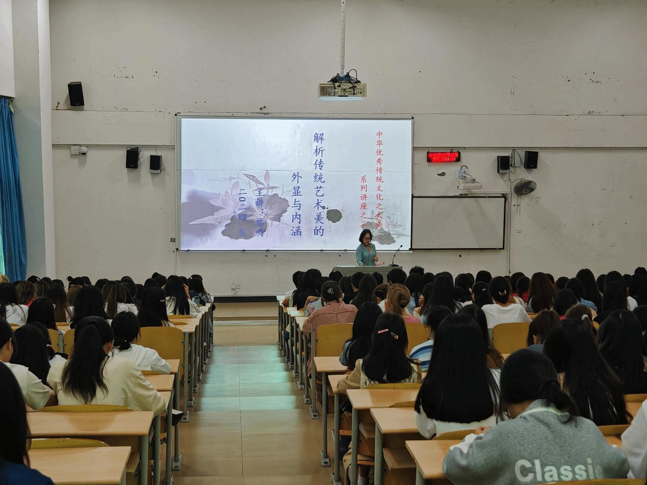 5月9日,第四届读书文化节“中华优秀传统文化大美系列讲座”首场活动在A6116成功举办,马克思主义学院曾鸣副教授作《解析传统艺术美的外显与内涵》主题报告,进一步深入学习贯彻党的二十大精神,丰富校园文化建设,丰富大学生的精神世界,提高人文素养,坚定文化自信。