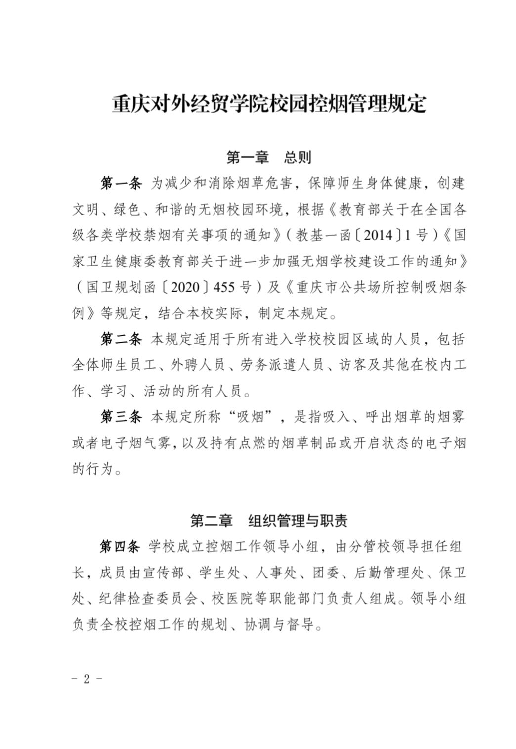 重庆对外经贸学院 关于印发《校园控烟管理规定》的通知