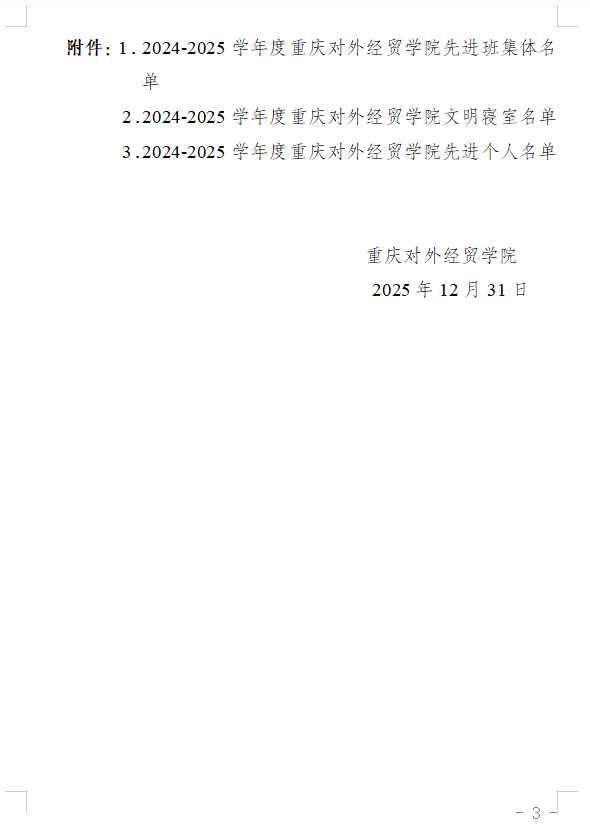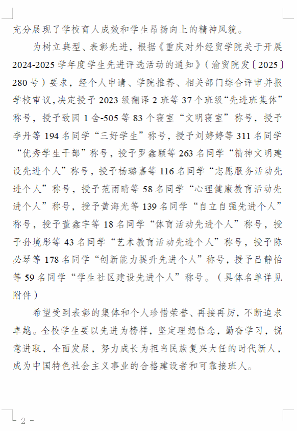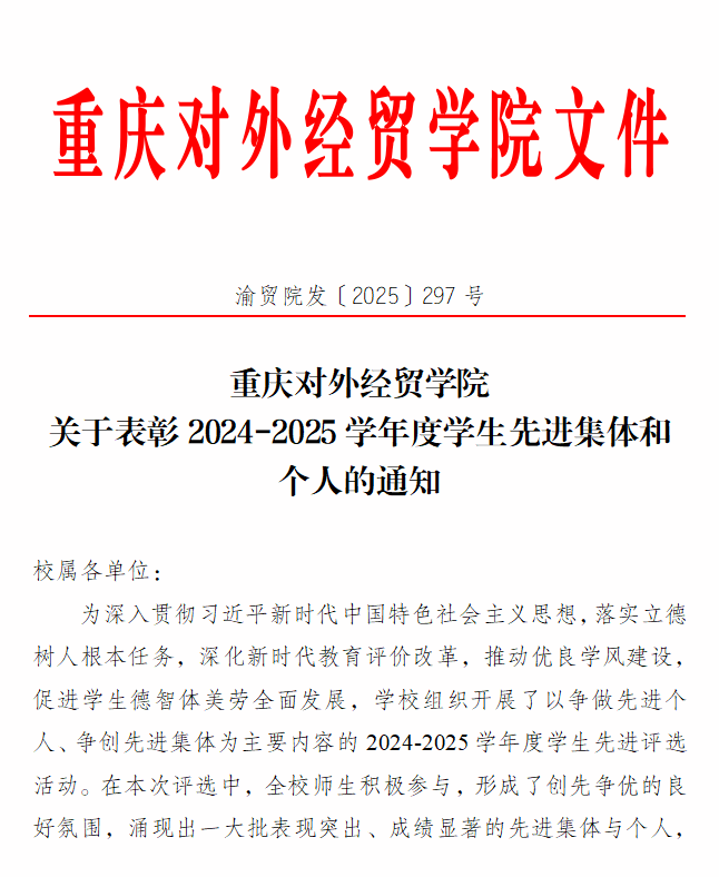 重庆对外经贸学院关于表彰2024-2025学年度学生先进集体和个人的通知