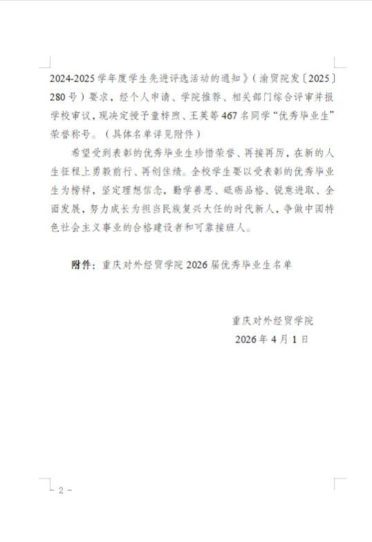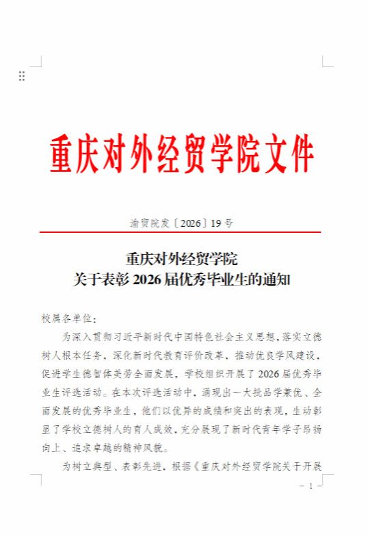 重庆对外经贸学院关于表彰2026届优秀毕业生的通知