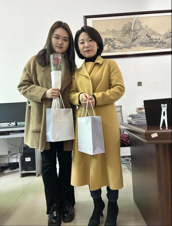 科研处到各个办公室送出礼物,老师们在收到礼物及祝福后收获了美好的心情,洋溢着灿烂的笑容。女同胞们感受到了温暖欣喜的氛围。