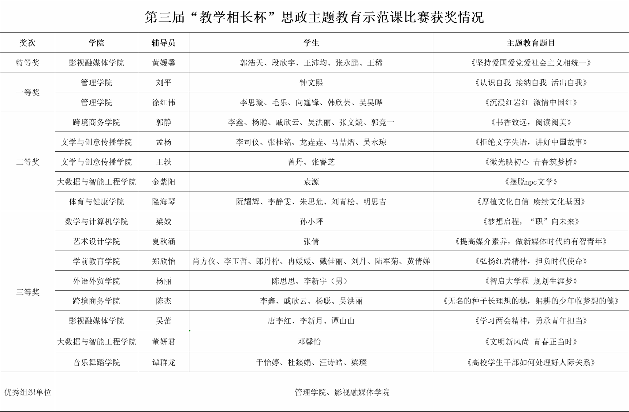 铸魂育人担使命,培元致新共奋进。作为学校思政教育形式内容创新品牌项目的“教学相长杯”思政主题教育示范课比赛历经三届的发展蜕变,已逐步趋向于成熟化、专业化和多元化。参赛辅导员们的授课形式愈加创新丰富,授课水平显著提升,充分彰显了学校以赛促学、以赛促练、以赛促进、以赛促训取得的良好工作成效,得到了学校各部门的充分肯定和认同。