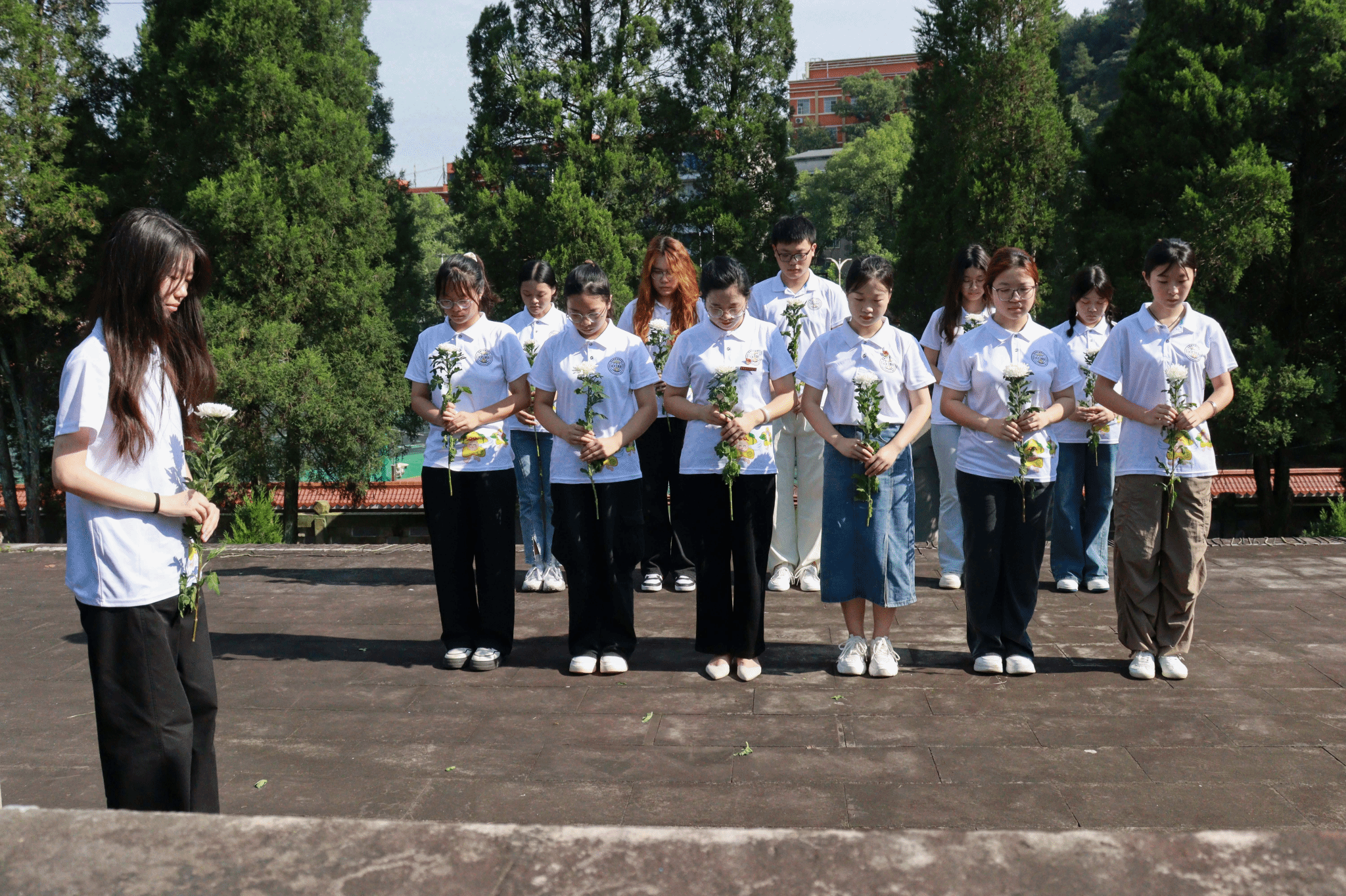 7月7日,团队去到蔡家烈士陵园,缅怀先烈,传承红色精神。蔡家烈士陵园是重庆市爱国主义教育基地,长眠着在五十年代第一个春天那场征粮剿匪、保卫蔡家的战斗中牺牲的三十多名人民解放军、共产党员、干部和群众。成员们手携白菊花,站在纪念碑前集体默哀,瞻仰烈士纪念碑,切实感受伟大的革命精神,有助于成员们更加深入的学习好、传承好、发扬好红色革命精神。