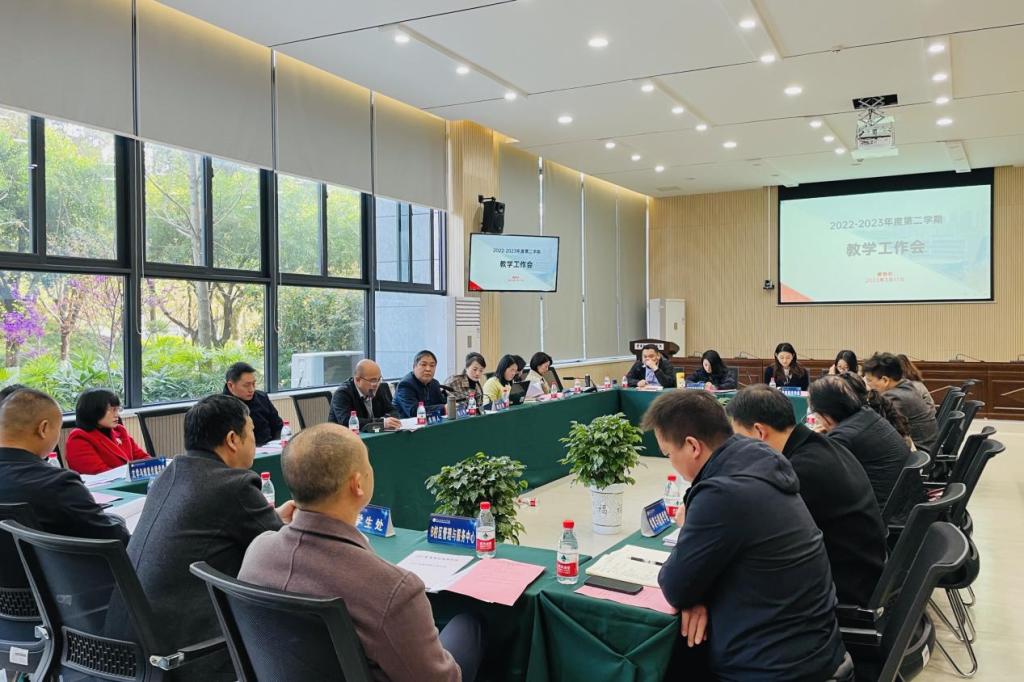 春种一粒粟,秋收万颗籽。时值全校师生学习贯彻党的二十大和全国两会精神之际,为进一步学习和落实学校2023年工作要点,真抓实干、奋发进取,打好底、起好步、开好局,扎实推进学校教育教学高质量发展,3月17日上午,在实训楼9106会议室召开了2023年春季学期教学工作会。学校副校长杜斗恒,各二级学院院长、副院长,学生处、信息技术中心、合川B校区管理与服务中心负责人及教务处科级以上干部参加会议,会议由教务处副处长彭高中主持。