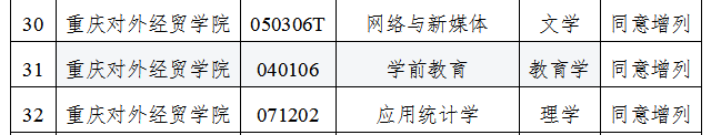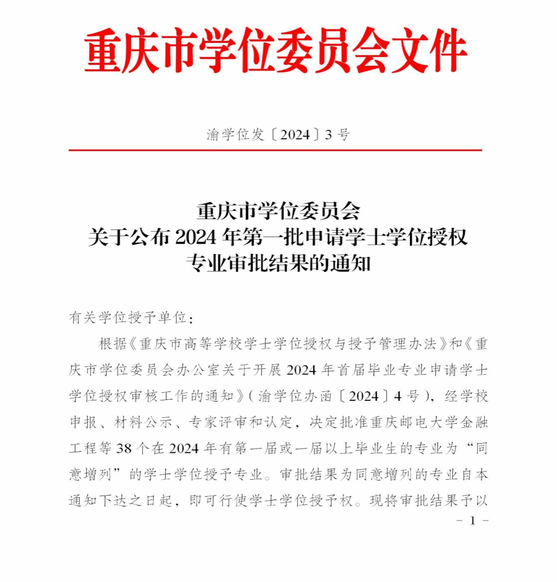 近日,根据《重庆市学位委员会关于公布2024年第一批申请学士学位授权专业审批结果的通知》(渝学位发〔2024〕3号),我校网络与新媒体、学前教育和应用统计学3个专业被同意增列为学士学位授予专业。