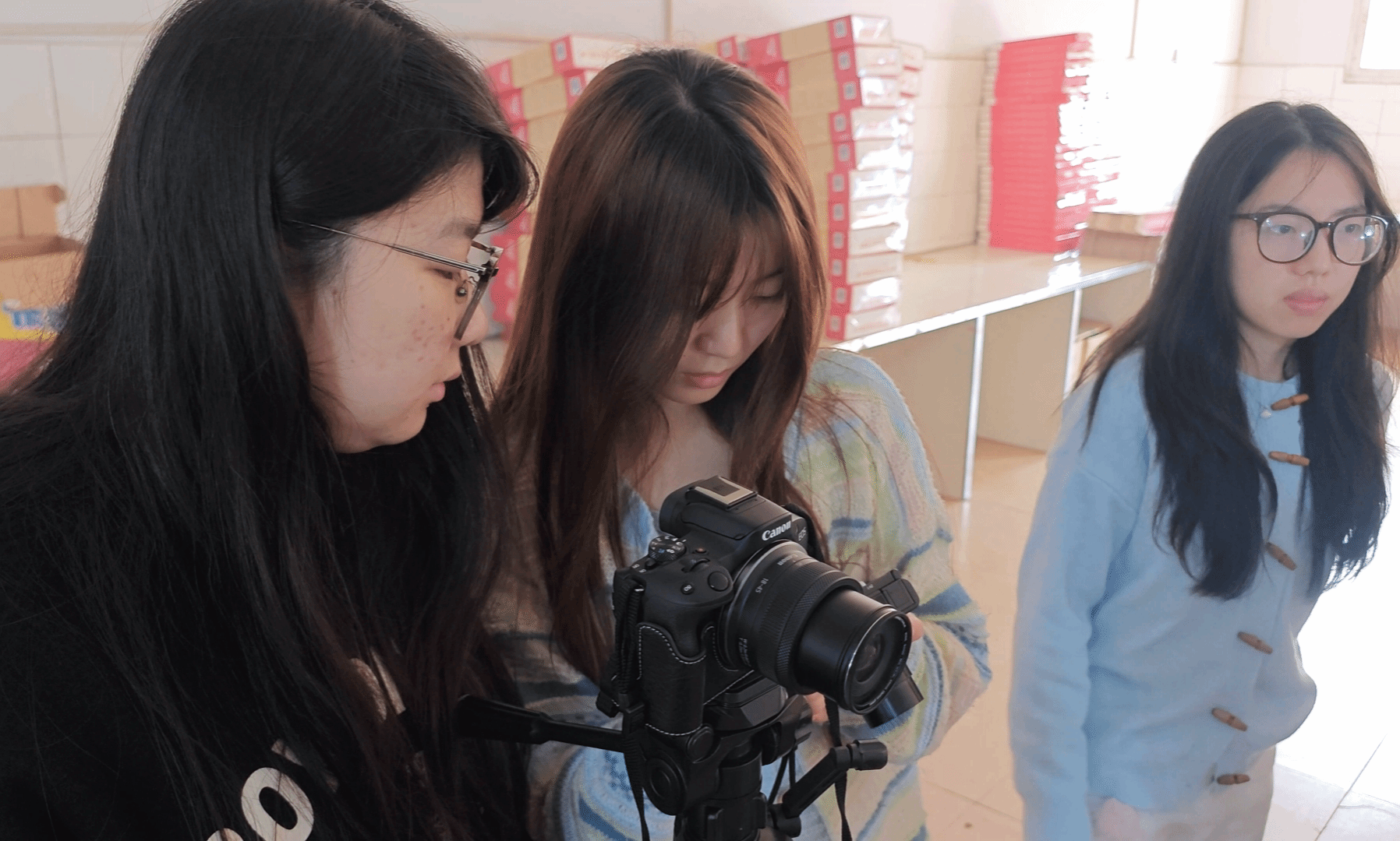 2023级新闻专业学生拍摄合川肉片包装过程
