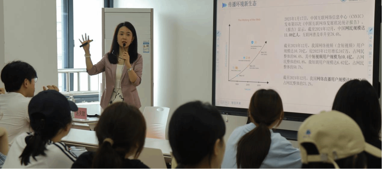 汤教授通过互动提问“中国覆盖最广的媒体形态”,结合影视行业未来发展趋势,科普“舆情”核心概念,点明了社交媒体是当代舆情的主要“诞生地”。并以“眼见是否为实”作为思考题,引导同学们反思舆情传播中的“信息失真”问题,鼓励大家结合专业知识探究智媒时代舆情风险归因与治理路径。