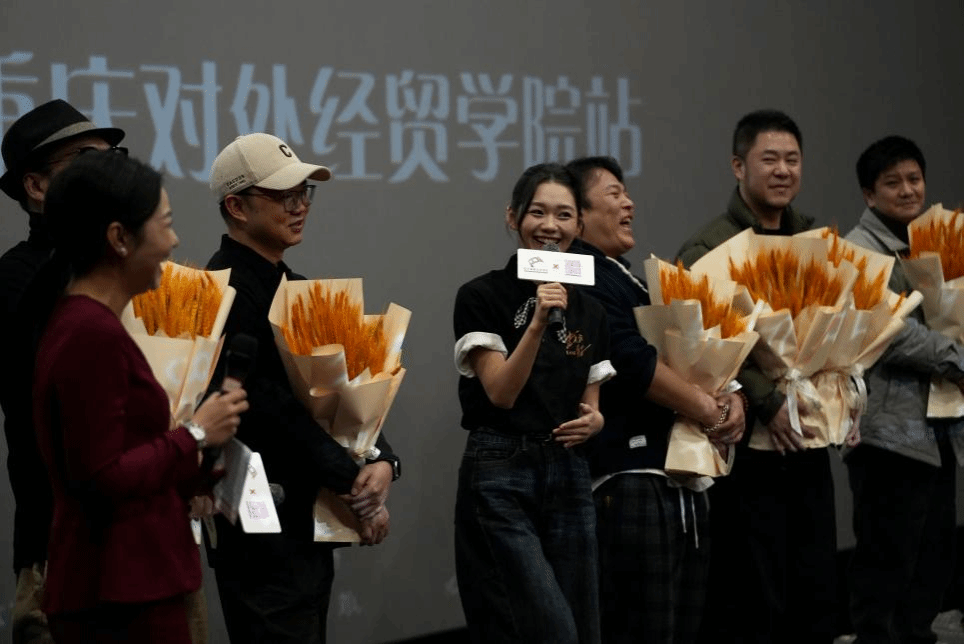 导演臧连荣在分享环节特别提到:“重庆对外经贸学院师生在影片创作中展现出的专业素养令人印象深刻。校园取景让影片更具真实质感,师生们的深度参与为电影注入了独特的青春活力与人文关怀。”